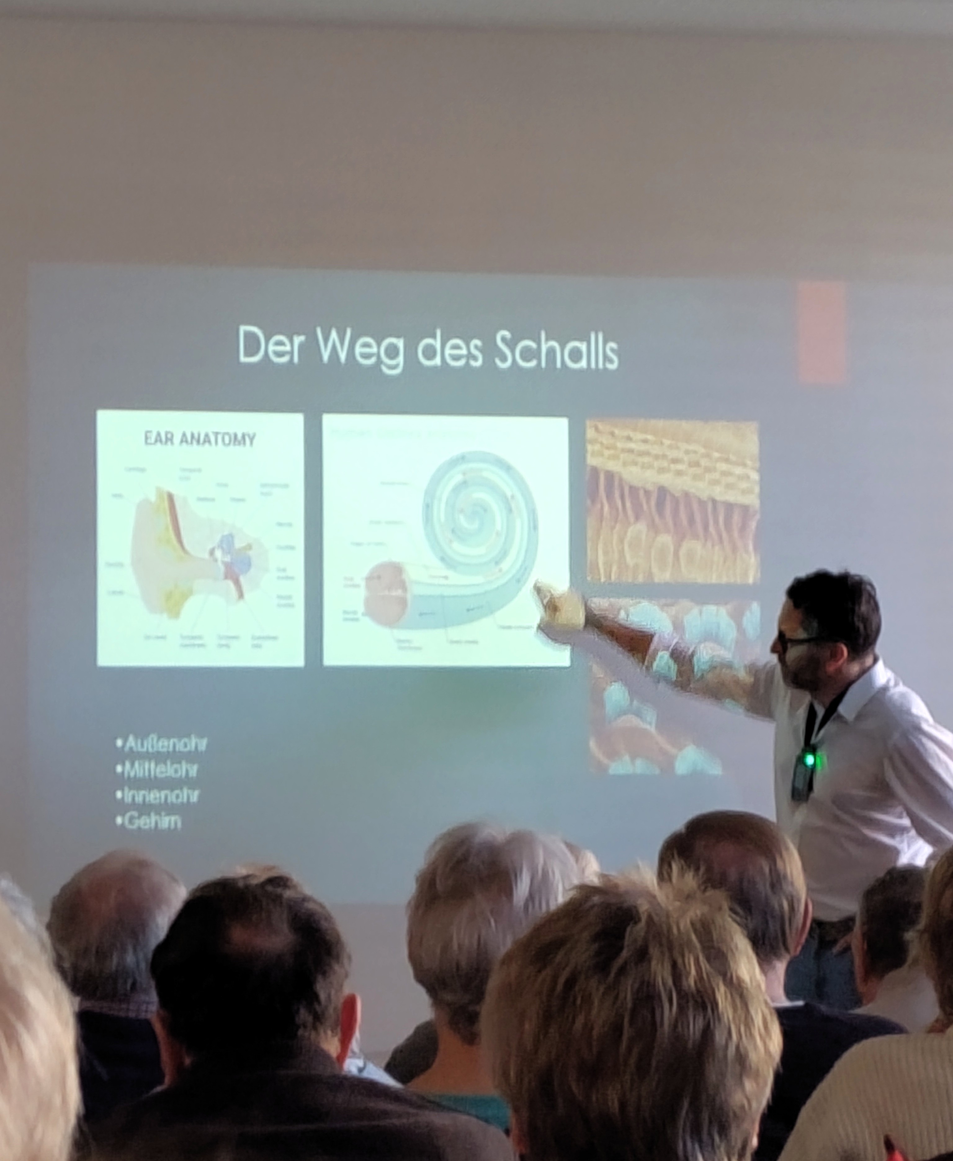 Im vollbesetzten Konferenzraum referierte der Ärztliche Direktor und Chefarzt der HNO Abteilung Dr. Marc Holzgraefe. Beginnend von der Funktion der Hörorgane bis zu verschiedenen Hörbeeinträchtigungen. Z. B. Schwerhörigkeit die schleichend beginnt, Tinnitus und Hörsturz.